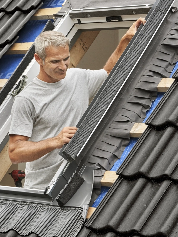 Die VELUX Eindeckrahmen gewährleisten einen regensicheren Anschluss zwischen den VELUX Dachfenstern und der Dachdeckung und sorgen für eine harmonische Integration in die Dachebene.