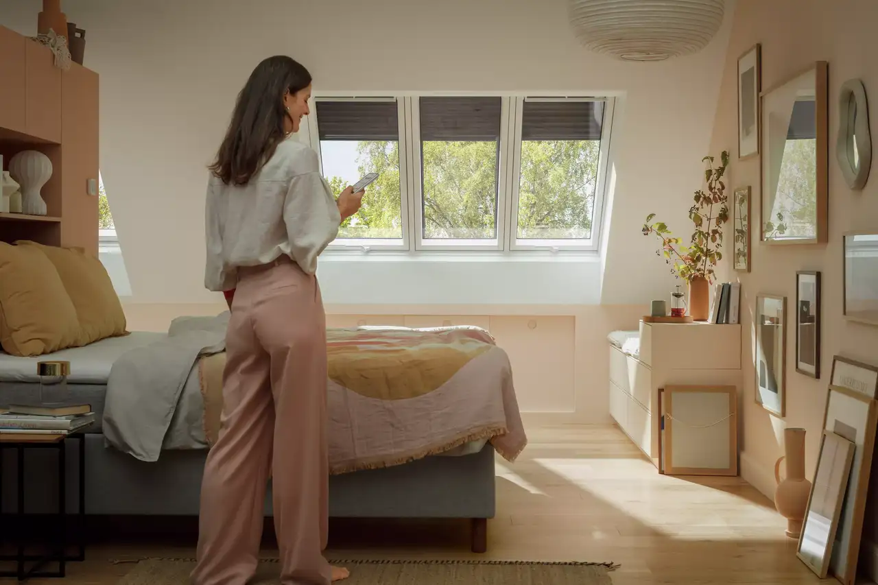 Die Dachfenster-Steuerung erfolgt per VELUX App Control. So reduzieren Sie Ihre Energiekosten und sorgen für ein gesundes Raumklima.