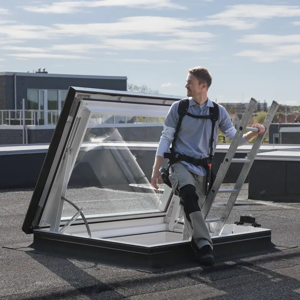 Das Flachdach-Fenster CXP ist ein Ausstiegsfenster für flache Dächer von 0 - 15°. Es kann bis zu 60° geöffnet werden und ist ideal für den Einsatz in öffentlichen Gebäuden und Wohnräumen.